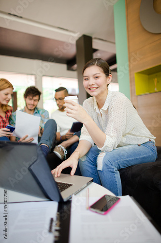 woman, drink, hot drink, office, adult, business, casual attire, clothes, co-worker, creative, cup, day, enterprise, entrepreneur, folder, food and drink, 4, group, happy, indoor, local, man, owner, people, smile, startup, togetherness, young, korean, laptop, technology, online, smartphone, mobile phone, phone, sofa