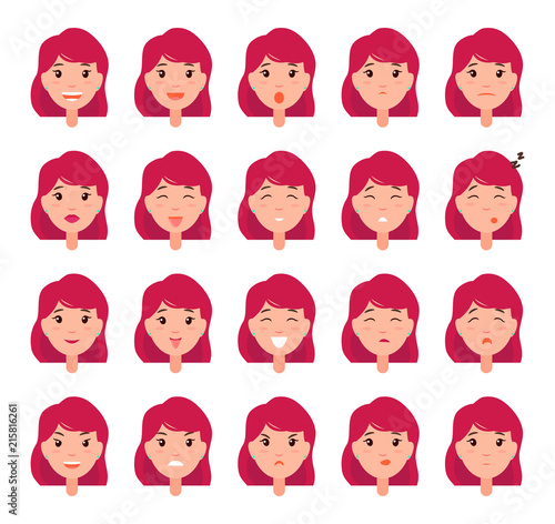 vector, person, female, face, set, illustration, cartoon, head, isolated, woman, emotion, character, smile, happy, design, adult, sad, young, avatar, girl, lady, facial, portrait, cheerful, angry, gesture, different, expression, fun, various, icon, human, part, standing, creation, constructor, concept, body, grimace, animation, wear, coiffure, cute, style, anger, laugh, surprised, confused, emotional, humor