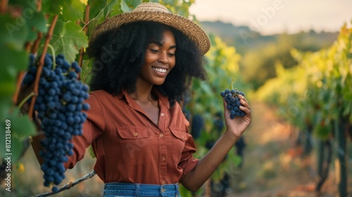 woman, sunset, beauty, work, female, fashion, smile, vinery, joy, harvest, autumn, nature, happy, grape, hat, outdoors, healthy, style, green, casual attire, agriculture, profession, wine, lifestyle, occupation, sunshine, well-being, farming, fruit, freshness, organic, enjoyment, rural, seasonal, farmer, plant, growth, crop, vine, vine-growing, vinification, botanical