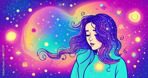 woman, girl, hair, dream, universe, space, starry, beauty, cute, sleeping, star, blue, galaxy, sky, background, nature, concept, astronomy, wallpaper, dark, star, illustration, female, card, astrology, abstract, night, design, graphic, colourful, planet, system, romance, outer space, natural, shine, science, romantic, moon, light, glow, love, banner, cartoon, model, face