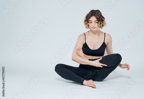 yoga, exercise, fitness, woman, body, adult, studio, caucasian, healthy, training, female, young, relaxation, gym, beautiful, beauty, health, pose, physical exercise, slim, people, girl, sport, lifestyle, 1, wellness, fit, asana, pilates, person, stretching, background, concentration, white, leisure, meditation, balance, position, meditating, human, mat, care, activity, relax, active, attractive, gymnastics, well-being, strength, sitting