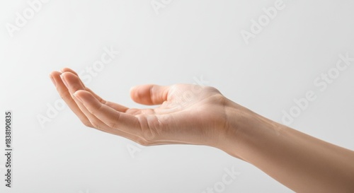 hand, palm, woman, female, background, copy space, copy, space, arm, wrist, finger, open, extended, offering, gesture, neutral, soft, skin, natural, smooth, light, white, minimal, empty, isolation, studio, product, commercial, placement, presentation, design, template, advertising, marketing, minimalist, holding, achieving, support, calm, serene, texture
