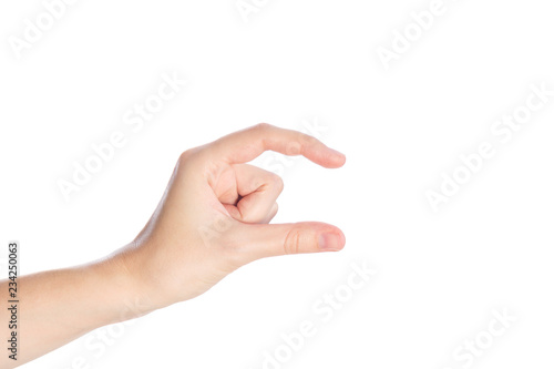 Woman hand showing size gesture isolated on a white background