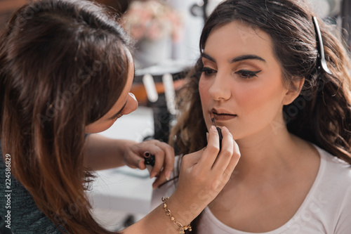 adult, applying, art, attractive, beautiful, beauty, business, caucasian, face, fashion, female, girl, coiffure, holding, indoor, job, lifestyle, make up, model, people, person, preparation, pretty, professional, salon, skin, touching, treatment, woman, work, men at work, working, young