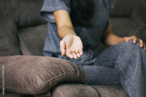wedding, ring, marriage, divorce, conflict, couple, breakup, adult, adultery, background, bereavement, betrayal, break, cheater, cheating, concept, crisis, decision, depression, difficulty, end, family, female, finger, hand, holding, home, indoor, leaves, lonely, married, people, person, problem, human relationships, removing, sad, separation, spouse, status, take, unhappy, wife, woman, worried