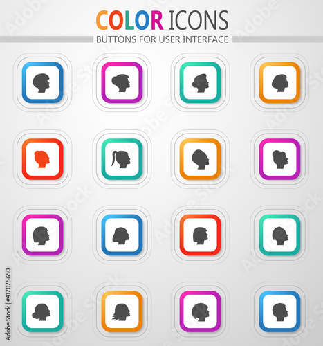 face, icon, head, girl, hair, silhouette, profile, woman, symbol, vintage, lady, cameo, people, ponytail, old, adult, love, baby, crown, regal, icon, illustration, set, web