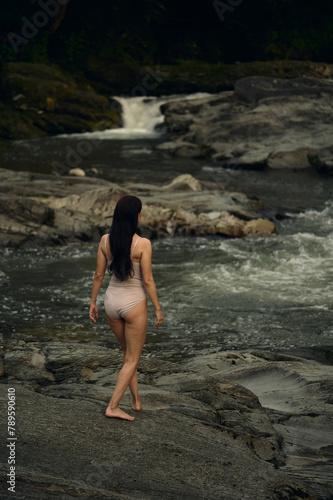 adult, attractive, barefoot beach, body, bra, breast, brunette, cliff, clothing, connection, elder, environment, face, female, feminine, fitness, hair, healthy, leg, lingerie, mountain, naked, natural, nature, naked, outdoors, people, person, pilates, portrait, river, rock, sensual, skin, sport, stone, stretch, summer, sunny, swimwear, swimwear, oneness, vacation, water, wild, woman, working out, yoga