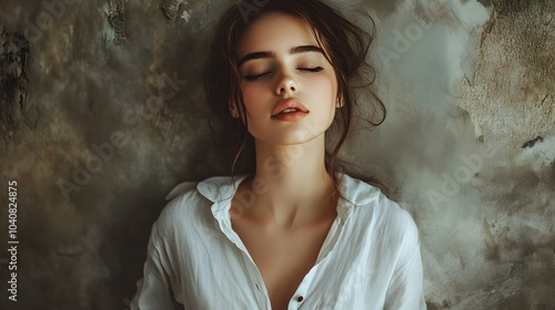 white, woman, shirt, linen, lifestyle, lady, girl, health care, make-up, beautiful, jean, healthy, fresh, sensual, feminine, vitality, clear, pillow, minimal, health, bed, spa, wellness, skincare, harmony, indoor, denim, beauty, clean, natural, wearing, underclothing, purity, blonde hair, mature, cool, relaxing, gesture, trendy, style, pant, russian, white background, care, bedding