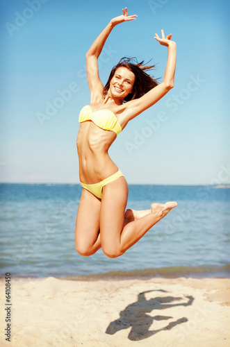 holiday, summer, beach, girl, bikini, sea, jumping, woman, vacation, sun tanning, tanned, resort, resting, honeymoon, beautiful, smiling, happy, attractive, fun, female, young, travelling, people, lifestyle, tour tourism, travel, side, ocean, tropics, model, european, swimwear, fit, sporty, slim, long, leg, body, figure, honed, get-away, sunlight, jump, freedom, fly, happiness, caribbean, maldives, bahamas, sexy