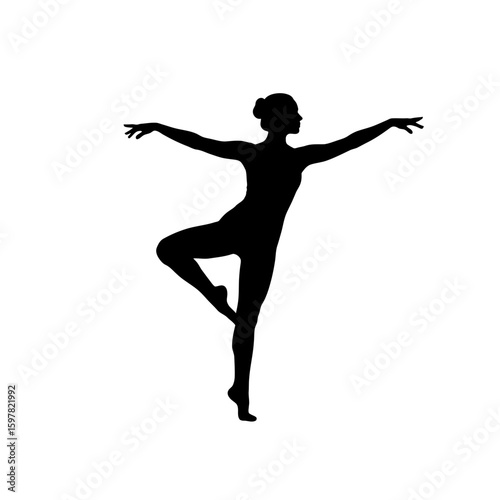 Woman in Dancer Pose Silhouette - Vector Yoga and Balance Icon