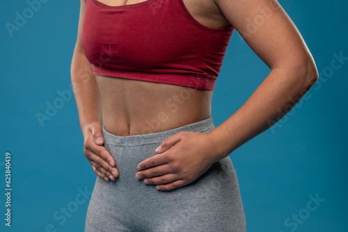 Woman in sportswear with a flat abs
