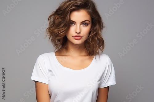 advertisement, model, shirt, print, posing, t, advertising, front, up, casual attire, brand, label, guy, lady, textile, wear, standing, 20s, outfit, promotion, tee, product, realistic, t-shirt, white shirt, advert, stylish, fashion, chest, placeholder, isolated, showcase, photo, editable, material, short, show, woman, female
