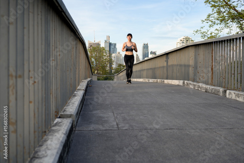 asian woman, woman, jogging, bridge, city, skyline, early, morning, fitness, exercise, running, healthy, lifestyle, activity, athlete, urban, nature, park, cardio, athletic, wear, sneaker, path, greenery, leisure, health, sunlight, energetic, movement, street, wellness, sport, pursuit, determination, city landscape, freedom, vitality, motivation, scenic, calmness, modern, pavement, enjoyment, trail, fresh, air, balance, journey