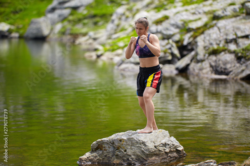 lake, water, woman, girl, beautiful, sexy, action, active, activity, adult, aggressive, art, barefoot beach, body, boxing, caucasian, combat, competitive, exercise, fight, fighter, fit, fitness, healthy, karate, kick, female, martial, mountain, nature, people, person, practice, punch, rock, rough, short, sport, strength, strong, thai, tough, training, 1, selective, sharpened