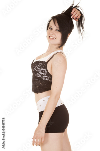 active, activity, adult, appearance, athlete, attractive, background, beautiful, body, care, caucasian, exercise, female, fitness, girl, gym, hair, healthy, isolated, lifestyle, looking, 1, person, physical, pose, position, pretty, relaxation, slim, activewear, studio, training, view, white, woman, physical exercise, year, young, youth, face, expression, black, lace, short, hold, top, smile, happy, side, joy