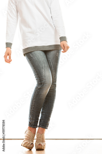 blue, jean, denim, body, pant, trousers, boot, casual attire, clothes, clothing, fashion, fashionable, female, fit, foot, footwear, girl, heel, human, leg, shoe, style, teenage, woman, model, white, isolated, heeled, hip, slim, adult, garment, leggings, tight, shirt, blouse