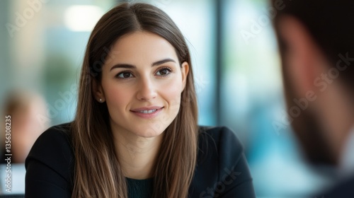 woman, business, meeting, person, office, professional, interview, communication, conversation, engaged, listening, care, talk, job, work, corporate, portrait, face, human, adult, brunette, young, employee, leader, management, leadership, smile, happy, success, team, teamwork, confident