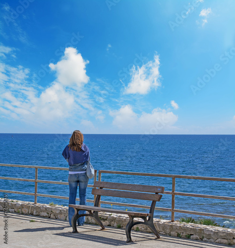 woman looking at the sea in autumn