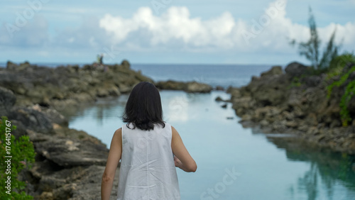 woman, travel, tropical, lagoon, sea, ocean, nature, freedom, vacation, lifestyle, wanderlust, adventure, relaxation, peaceful, scenery, tour tourism, journey, backview, paradise, blue, summer, outdoors, exploration, horizon, mindfulness, solitude, island, scenic, inspiration, calm