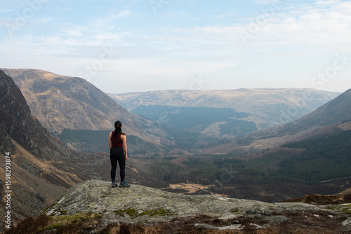 hillside, glen, countryside, hiker, hiking, adventure, travel, view, picturesque, spring, moorland, nature, landscape, mountain, peak, woman, rock, mountain, hill, trekking, holiday maker, person, active, outdoors