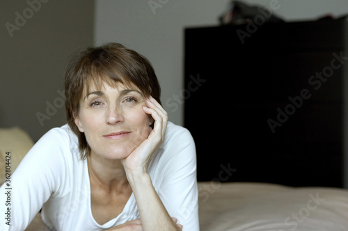bed, bedchamber, business, businesswoman, career, casual clothes, casual clothes, caucasian, cheerful, comfort, comfortable, confidence, confident, content, contentment, corporate, cosy, female, free time, front view, happiness, happy, human, indoor, indoor, lady, leisure, avocation, one person, people, person, pleasure, relax, relaxation, relaxing, rest, resting, she, smile, smiling, woman