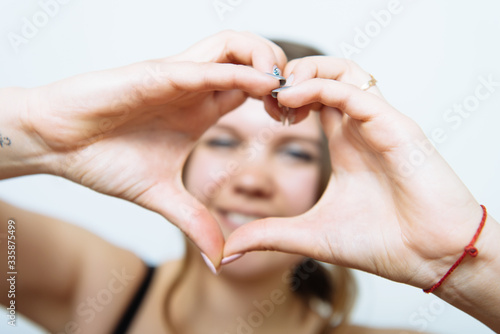 woman making a hand heart frame
