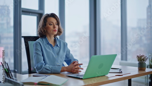 Woman manager creating idea working laptop in office. Beautiful businesswoman