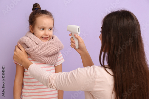 background, care, catch, caucasian, check, children, children, cold, colours, make well, daughter, device, diagnosis, disease, exam, family, female, fever, flu, girl, health, ill, disease, infection, flu, infrared, children, lilac, little, measurement, measuring, medicine, modern, mother, people, person, pneumonia, portrait, foulard, sick, disease, painfully, symptom, temperature, thermometer, throat, virus, woman