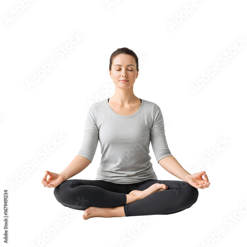woman, meditating, meditation, yoga, wellness, peace, calm, mental health, mindfulness, relaxation, lifestyle, person, female, spiritual, zen, harmony, balance, sitting, pose, isolated, template, background, health
