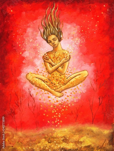 woman, adult, caucasian, levitate, meditate, heal, evolve, regenerate, rejuvenate, sleep, peace, tranquil, quiet, spiritual, blond, naked, flower petals, energy, aura, pink, art