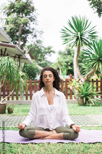 yoga, meditation, young, yard, woman, tropical, spirituality, spiritual, sitting, pose, person, people, palm tree, palm, outside, outdoors, 1, nature, mudra, mat, lotus, lifestyle, healthy, green, garden, sharpened, female, eye, daylight, day, closed, caucasian, calm, brunette, asana, alone, girl, adult, adult, 20s, grown-up