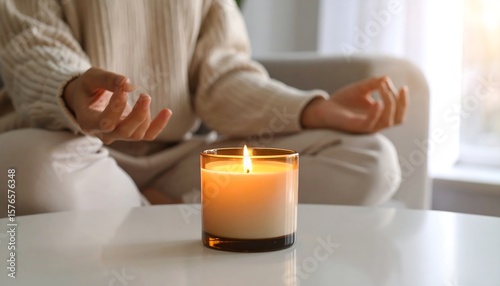 Woman meditating with candle