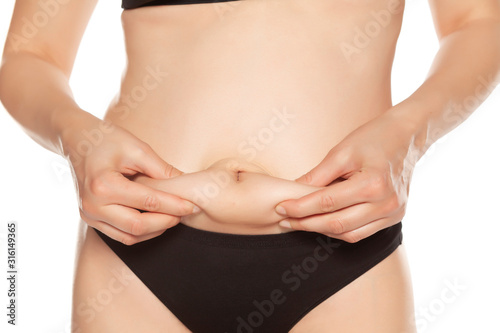 showing, pinch, caucasian, overweight, tummy, liposuction, abdomen, beauty, hand, woman, waist, young, lifestyle, stomach, diet, dieting, loss, shape, skin, closeup, healthy, female, belly, weight, body, fat