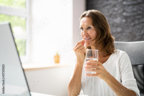 tablet, medication, water, pill, woman, desk, glasses, take, diabetic, vitamin, medicals, reading, office, business, treatment, computer, patient, sick, drug, drinking