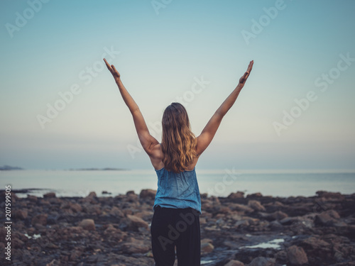 wellness, summer, beach, sunset, meditation, mindfulness, sea, arm, beautiful, beauty, body, coast, dawn, female, fitness, freedom, girl, happy, health, healthy, lifestyle, nature, ocean, people, pose, relaxation, sky, sun, sunlight, sunrise, water, woman, yoga, young
