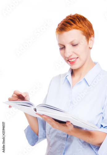 read, studying, study, learn, learning, woman, isolated, student, female, book, isolated on white, education, cognition, vertical, photograph, 1, caucasian, reading