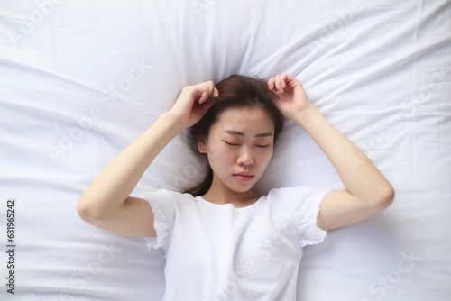 woman, resting, bed, relaxation, serene, tranquil, peaceful, comfort, sleep, rest, leisure, rejuvenation, nap, cosy, bedchamber, pillow, blanket, dreamy, calm, quiet, serenity, restful, restorative, comfortable, unwind, reclining, sleeping, lying, home, beauty, person, relax, sleepy, morning, 1, people, face, dream, brunette, lifestyle, relaxing, house