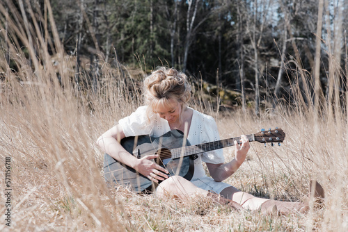 guitar, woman, music, young, musician, girl, instrument, playing, play, beautiful, musical, people, guitarist, rock, person, happy, caucasian, white, sound, fun, background, attractive, adult, pretty, lifestyle, acoustic, portrait, beauty, song, performer, artist, player, concert, man, electric, fashion, entertainment, singer, isolated, smiling, hair, performance, style, studio, leisure, cute, smile, band, sitting, happiness, summer, singing, nature, outdoors, one person, female