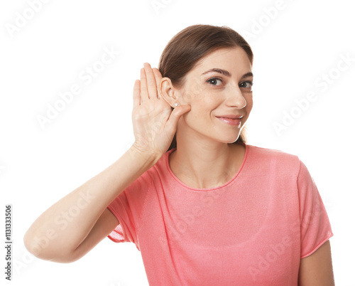 acoustic, acoustical, adult, audio, auditory, earing, background, caucasian, communication, curiosity, ear, eardrum, eavesdrop, female, funny, gesture, gossip, hand, hear, hearing, interesting, isolated, listen, listening, louder, model, nosey, person, portrait, privacy, rumour, secrecy, secret, sensory, showing, sound, spy, volume, white, woman, young