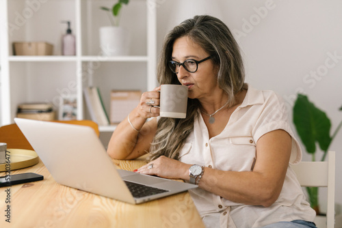 home, portrait, mature, mature adult, meeting, mid-life, online, typing, laptop, woman, zoom, coffee cup, drinking, lifestyle, cyberspace, baby boomer, elderly, browsing, caucasian, computer, conversation, daylight, dining room, electronic, indoor, electronic mail, entrepreneur, eyeglass, female, freelancer, home office, sipping, home, business, businesswoman, working, hot drink