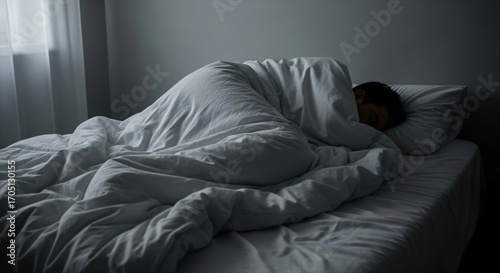 woman, sleep, bed, rest, recovery, dark, bedchamber, night, morning, comfort, healthy, lifestyle, tranquil, relax, quiet, adult, human, female, person, light, room, blanket, cosy, peaceful, early, nap, dream, leisure, dreamland, serenity, wellness, sleepy, health, domestic, home, house, interior, well-being, hygiene, routine, silence, space, background, calm, relaxation, deep, privacy, serene, sweet