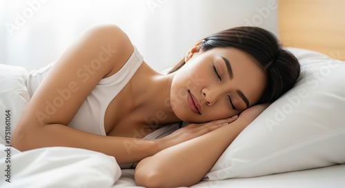 Woman Sleeping Peacefully on White Bed — Sleep & Wellness