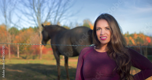 woman smile on equine ranch country farm outdoor countryside autumn