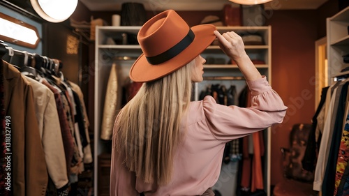 woman, blonde hair, hat, pink shirt, closet, clothing, fashion, style, lifestyle, clothes rack, interior design, home decor, shopping, accessory, organised, stylish, trendy, autumn, fall, cowboy, western, children, people, country, cowgirl, horse, farm, person