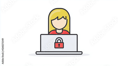 Woman using a laptop with a padlock symbol representing secure online activity, privacy protection, and data encryption.