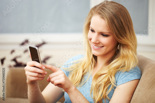 woman, reading, human face, cheerful, text messaging, mobile phone, blonde hair, toothy smile, smiling, beautiful, one person, female, hand, holding, sofa, sitting, mobile phone, horizontal, copy space, people, caucasian, long hair, indoor, living room, adult, young adult, phone, mobile, communication, message, mobile phone, phone, technology, mobile phone, home, text, beauty, person, texting, business, smile, teenage, lifestyle, lady, call