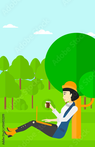 academy, person, flat, illustration, design, female, human, vector, people, background, layout, woman, cartoon, education, character, study, studying, cognition, vertical, girl, computer, learn, search, web, technology, student, bachelor, college, university, graduating, graduate, laptop, e-learning, tree, nature, sitting, online, network, to sit, drinking, outside, forest, park, hot drink, beverage, drink, asian, ethnicity