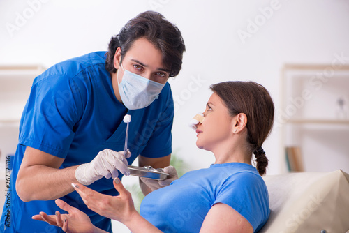 Woman visiting male doctor for plastic surgery