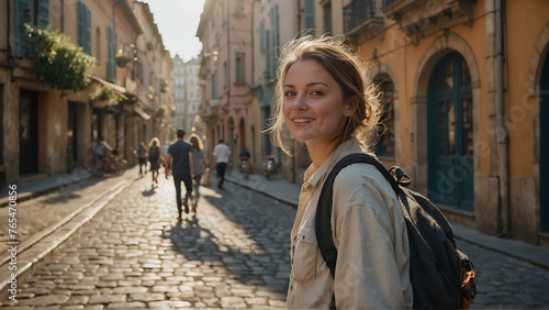 woman walking in the city.Fashionable Woman Exploring the City on Foot"