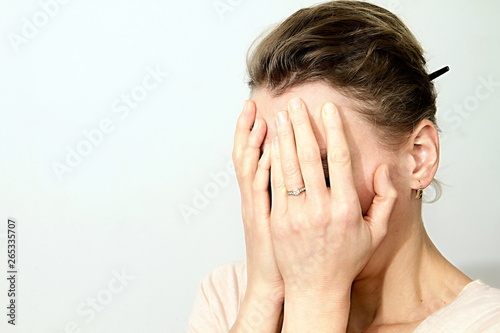 woman, young, face, portrait, hand, isolated, boy, white, sad, children, stress, beauty, person, pain, hand, expression, people, cephalalgia, head, hide, teenage, eye, human, 1, beautiful, ache, adult, attractive, background, care, caucasian, closeup, depressed, depression, exhausted, feeling, female, girl, health, hold, lady, mature